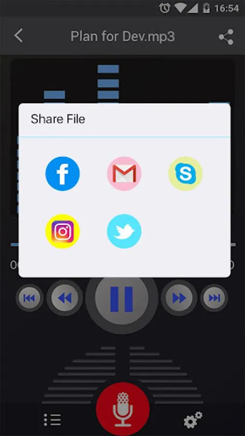 - send/share a recording via email, sms, mms, facebook, whatsapp, dropbox, etc.