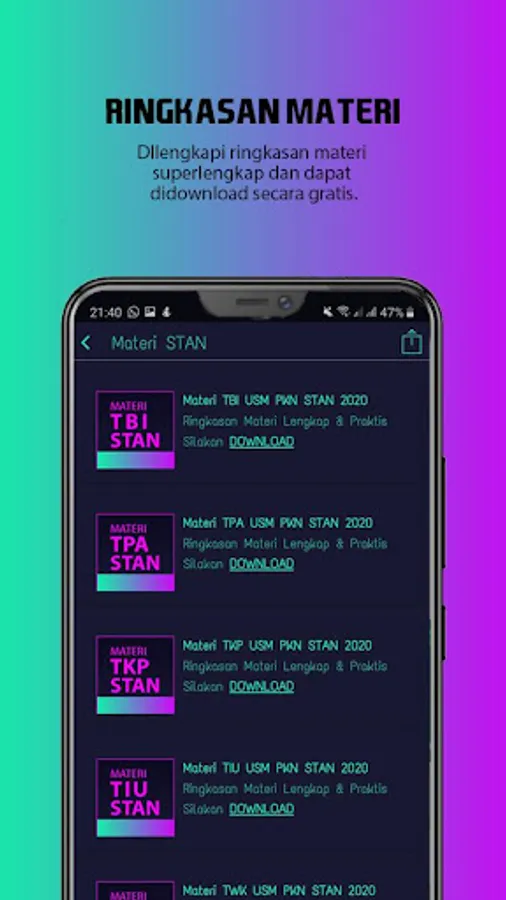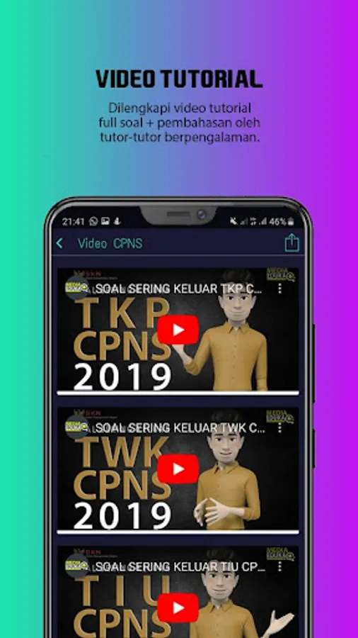 You can truly change the way you study for exams only with your mobile or tablet. Without the need to subscribe, everything can be accessed for free. Eduka Media is here for you to face various tests, starting CPNS, SBMPTN, STAN, National Exams, & other tests that will always be updated.