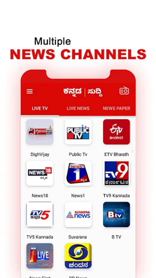 TV9 Kannada, TV5 News, News18, Suvarna News, Dighvijay, DD News, Public Tv,SVBC, Suvarana ,Samara News,Raj News Kannada,Daiji world,Indian TV Kannada,BTV,News First Kannada,SS TV