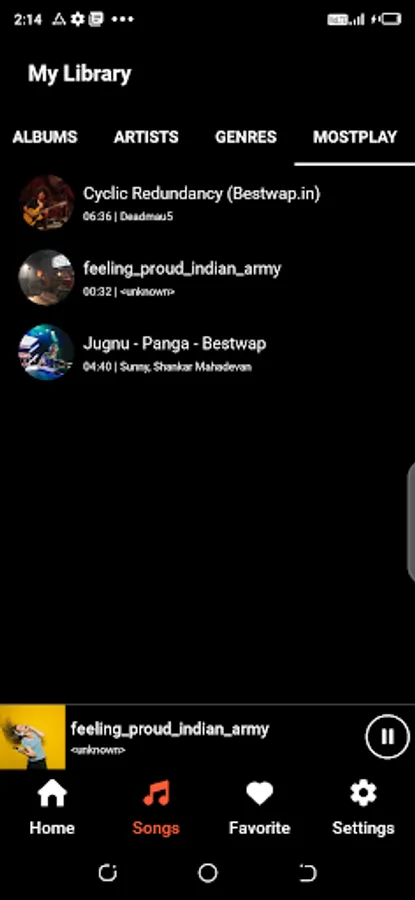 Search your favourite music easily from default music categories like SONGS, ALBUMS, ARTISTS, FOLDERS, PLAYLISTS, GENRES etc.