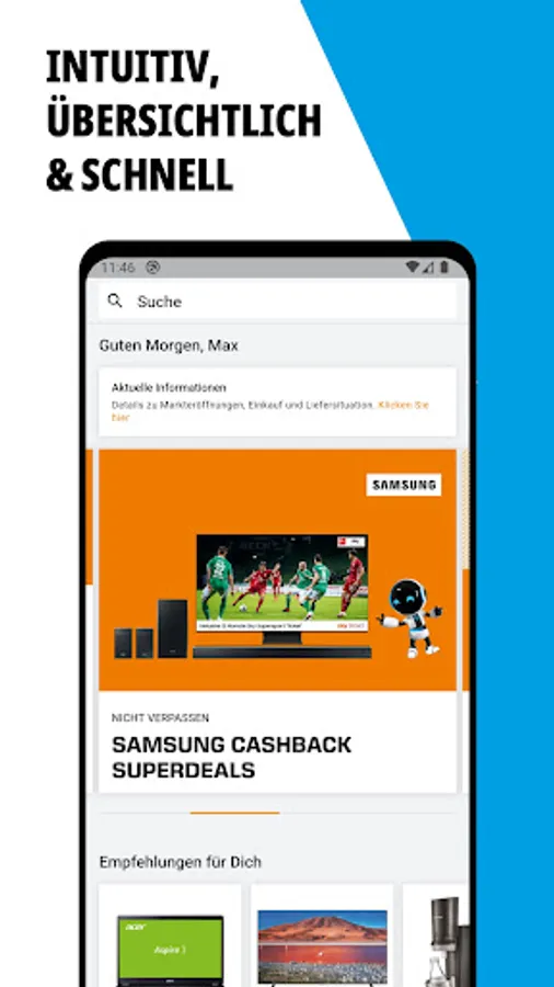 Shop on the go with the Saturn app: turn your smartphone into a technology surprise bag and always stay up to date with the latest developments. Whether it's a new notebook or household appliance, with the free Saturn app you can make your electrical purchases anytime, anywhere. Decide whether your order should be delivered directly to the store or to your home.