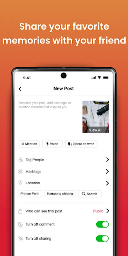 - Post photos and videos that you want to show to your friends and families on your newsfeed