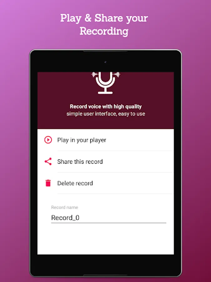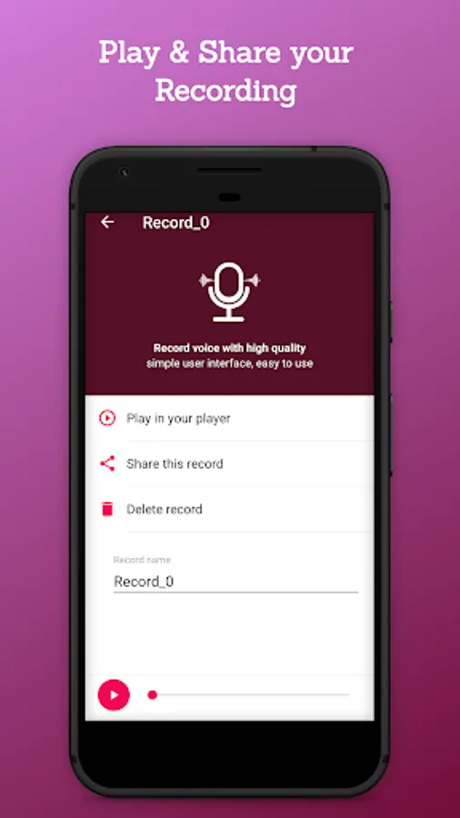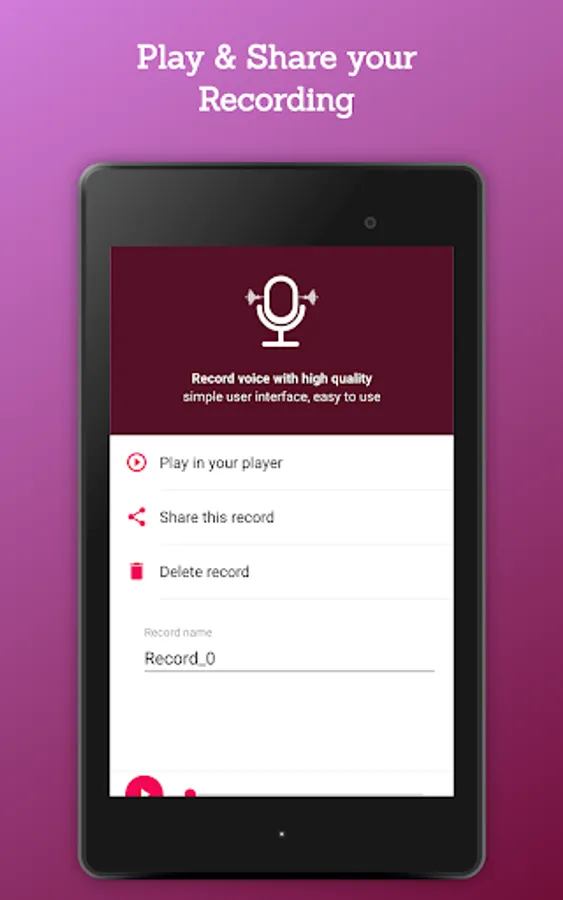 3. Play the recorded sound in a build -in player or choose other player and share it easily.