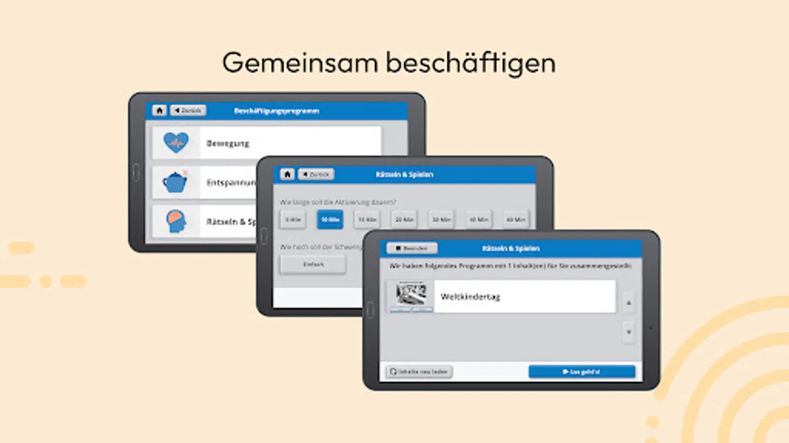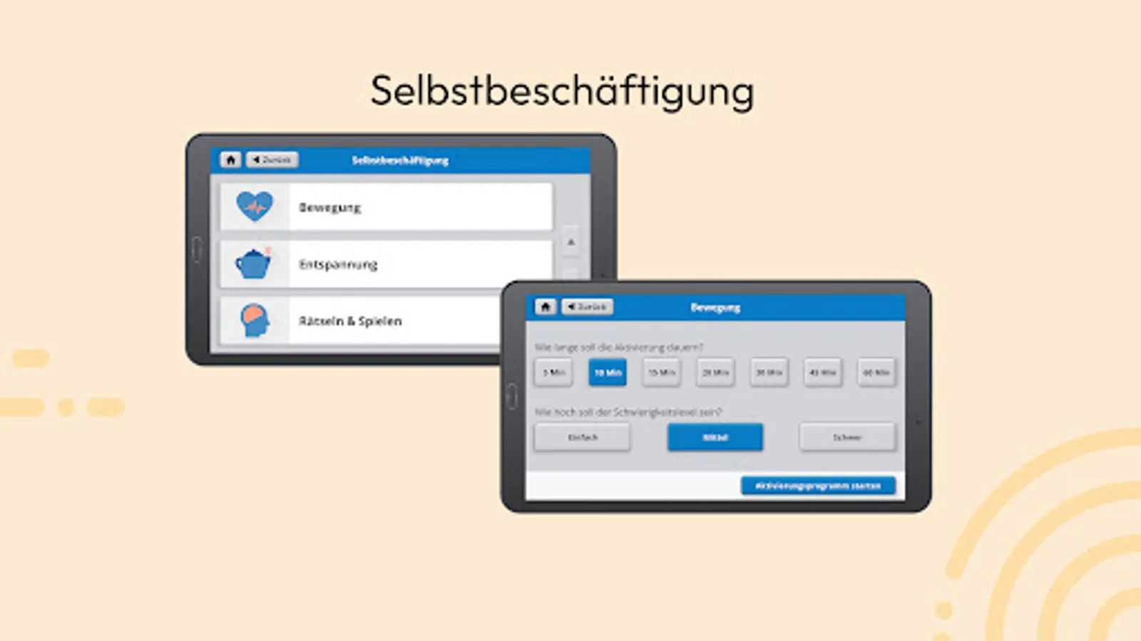 The relatives area is specially designed to involve family members in the care process. You can take part in prepared activities together with the senior or give them the opportunity to use them independently. The app creates a new level of connection and interaction that benefits both seniors and loved ones.