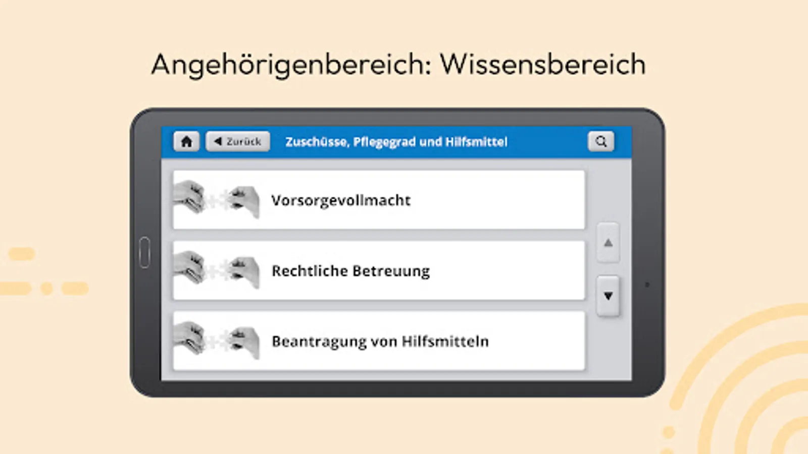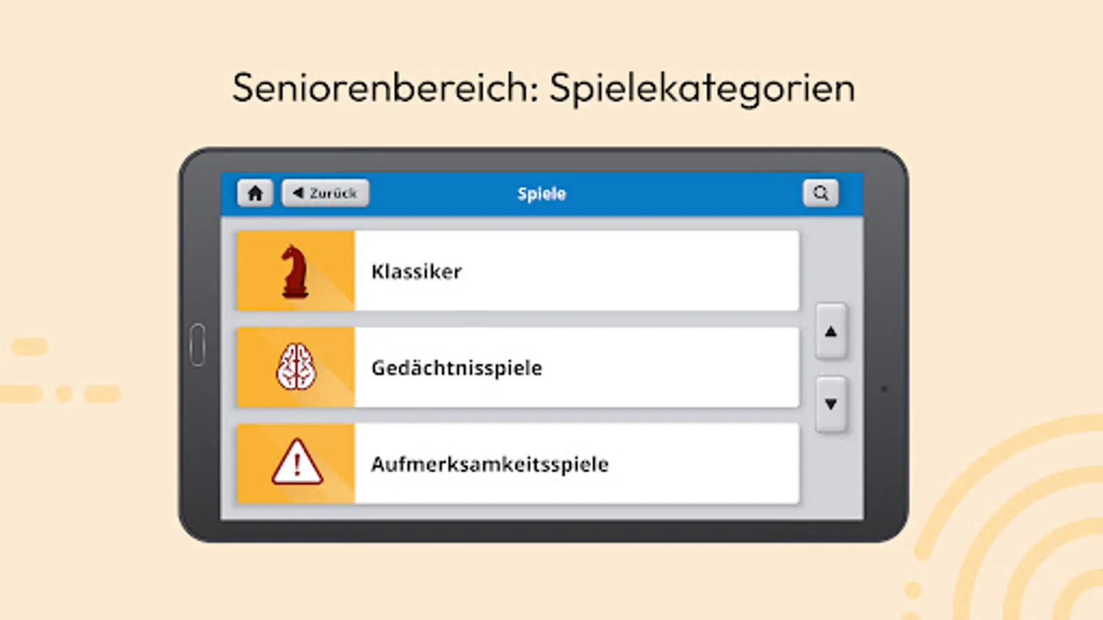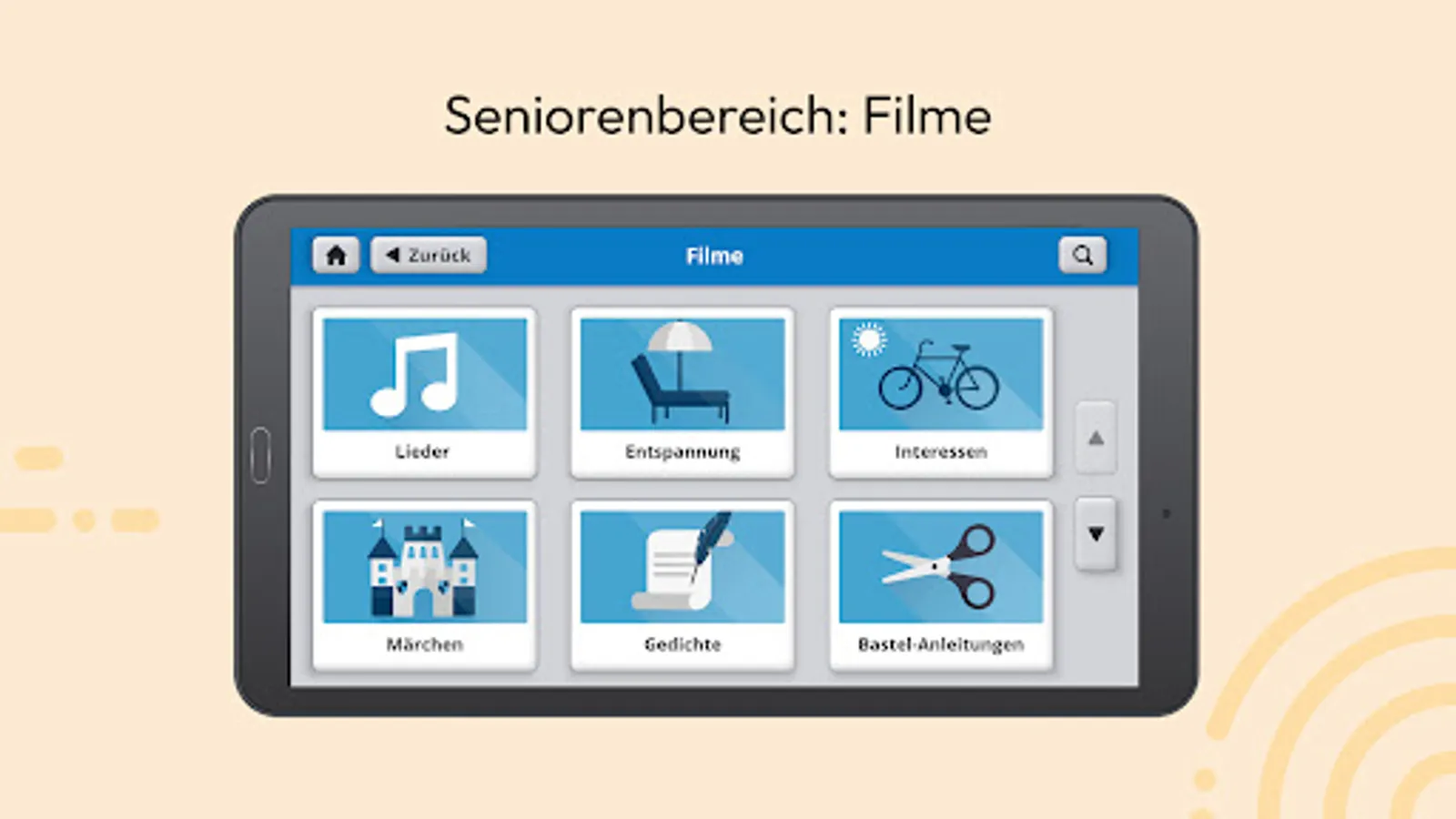 In the seniors' area, we enable older people to move freely and safely. With a wide range of fun games and activities, boredom is prevented and mental fitness is encouraged. The app also allows senior-friendly surfing on the Internet and uncomplicated communication with the family via text, pictures and even video calls.