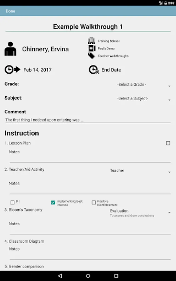 Following McREL’s training on recognizing research-based instructional strategies, observers use the device to record strategies, student grouping, and other components during 3-5 minute walkthroughs. Though our template is based on the strategies from Classroom Instruction that Works, 2nd edition, schools and districts can customize their template to capture additional data specific to their needs.