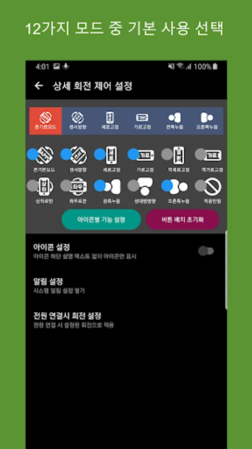 - Phone basic mode: Automatically rotates horizontally, vertically, and sensor rotation according to the design of each app.