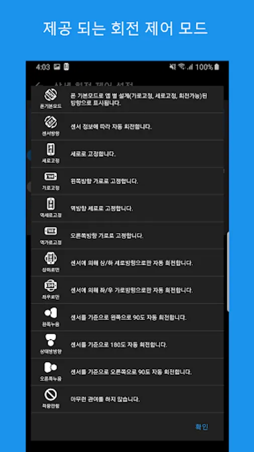 - Sensor direction mode: Automatically rotates according to sensor information.