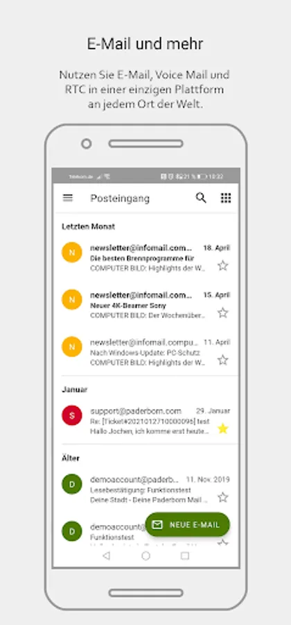 Paderborn Mail is up and running in minutes. You don't have to do any complicated configuration or cryptic settings. Get Paderborn Mail on your smartphone now!
