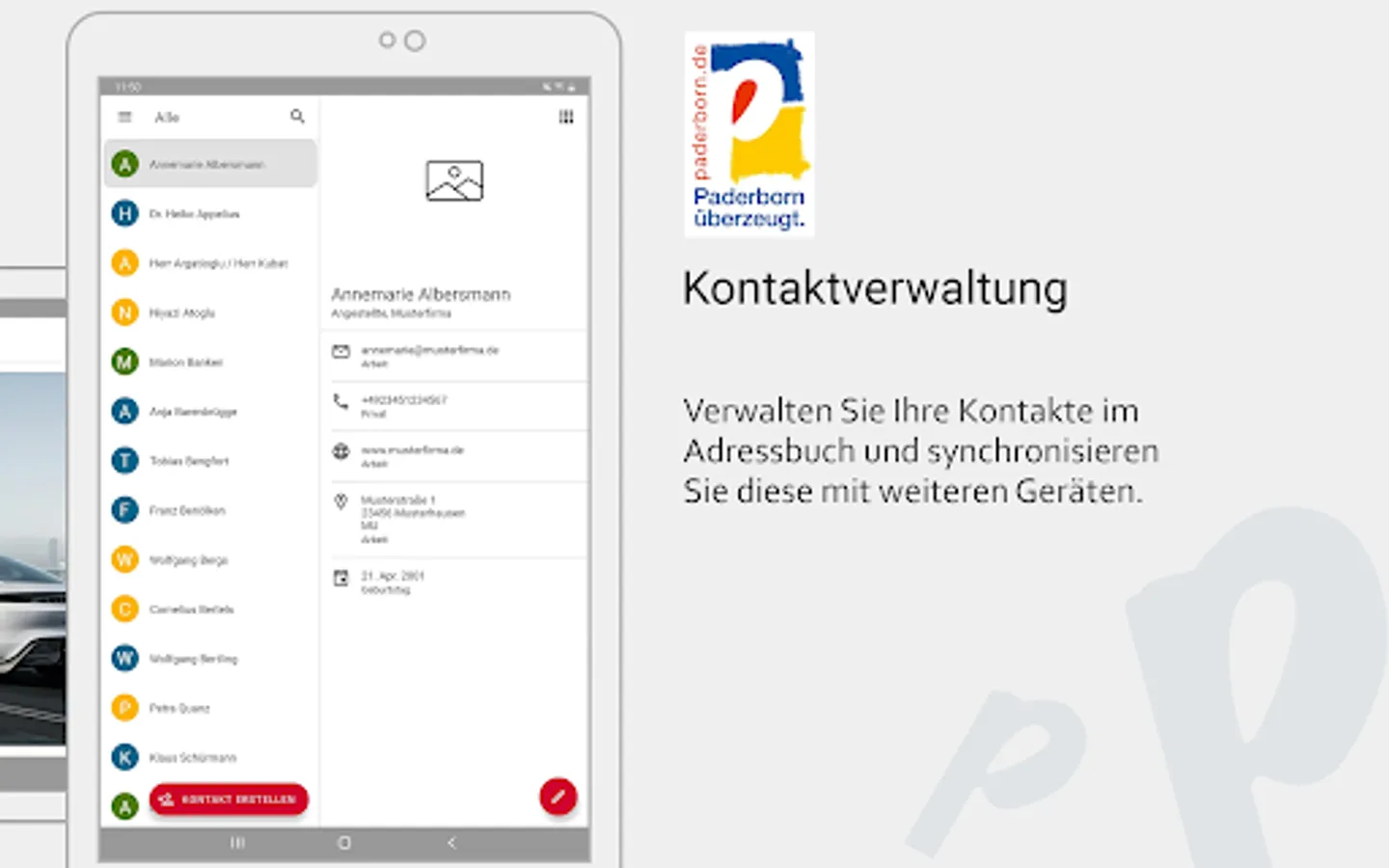 ▪ If you like, you can maintain your own address book in Paderborn Mail. The advantage: Paderborn Mail contacts are not in the address book of your smartphone and are only visible in your Paderborn Mail app. Data-hungry apps (e.g. instant messengers) can therefore not access these addresses.