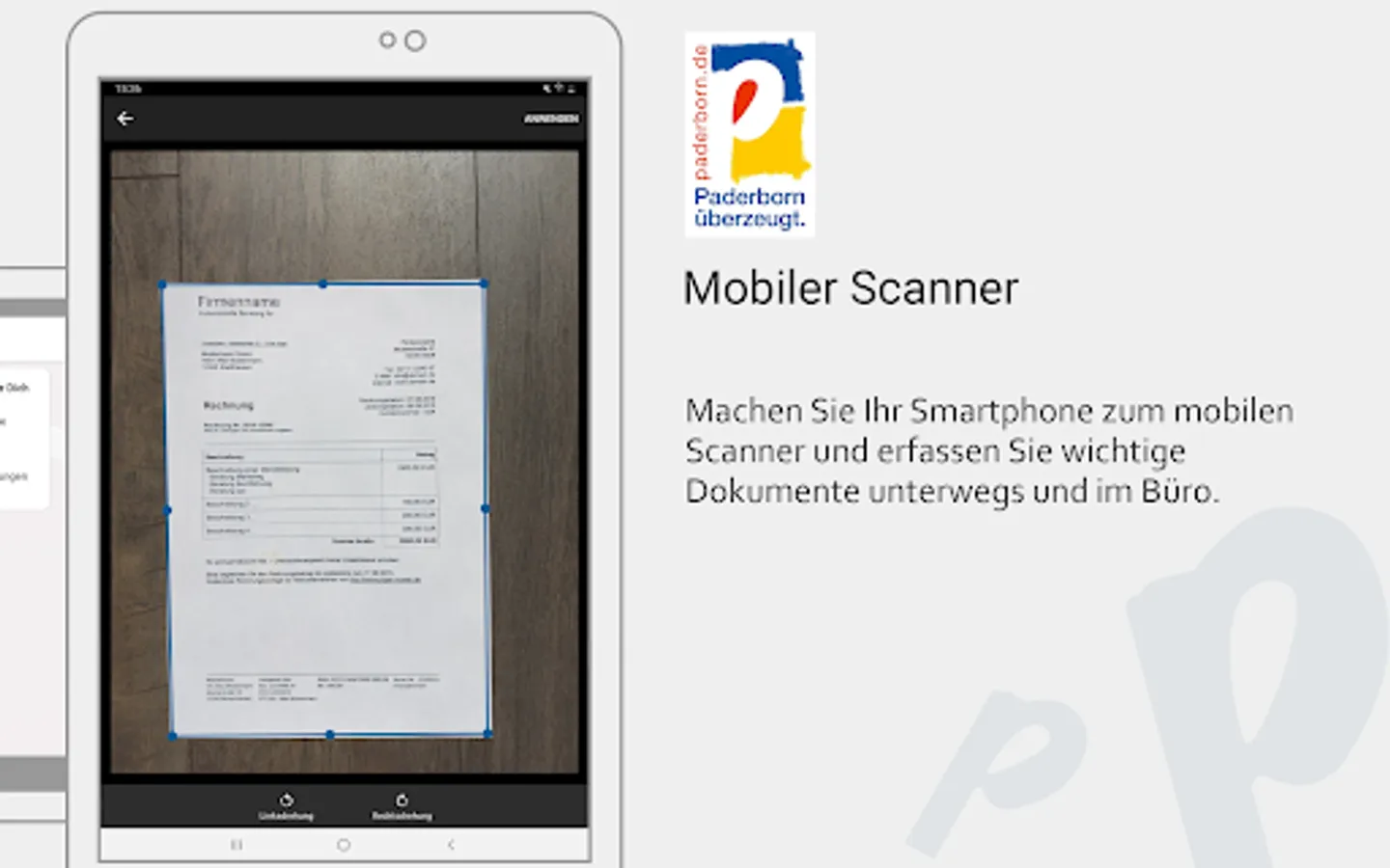 ▪ Easily scan letters and papers with your smartphone and archive them as PDFs in your secure Paderborn mail cloud.