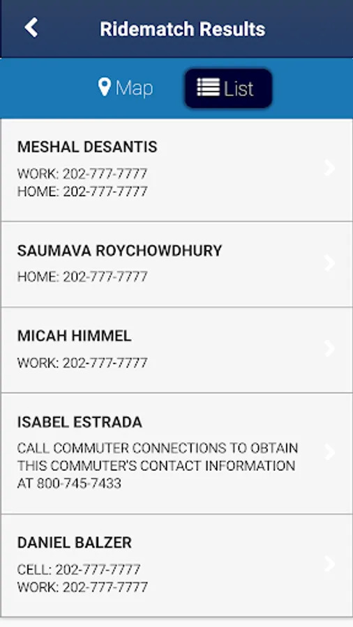 The Commuter Connections mobile app provides commuters in the Washington DC metropolitan region access to ridesharing matches with other commuters living and working in the same area and park and ride lot locations close to home.