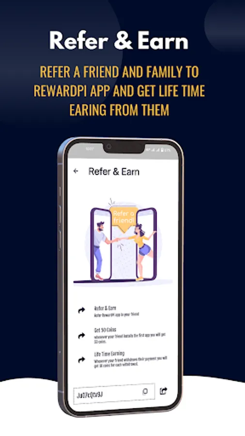 RewardPi app also provides a refer and earn program where you can refer the RewardPi app to your friends and earn 50 coins for each referral and get lifetime earnings from that friend whenever he/she withdraws their payment, you will get 20 coins for each successful withdrawal.