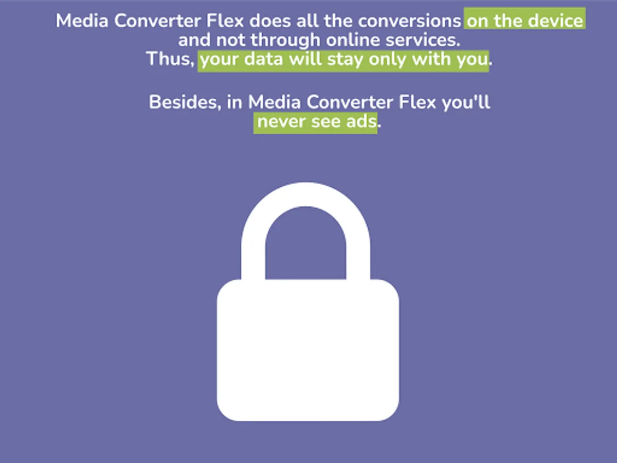 The conversion is done on the device itself, so no videos with personal data are transferred to a server on the Internet. Since no online service is used, the conversion works without long uploading of large videos.