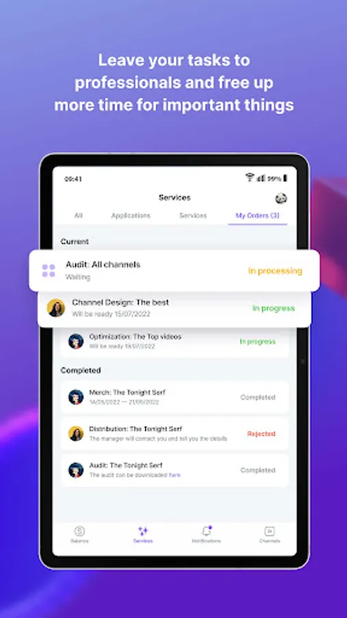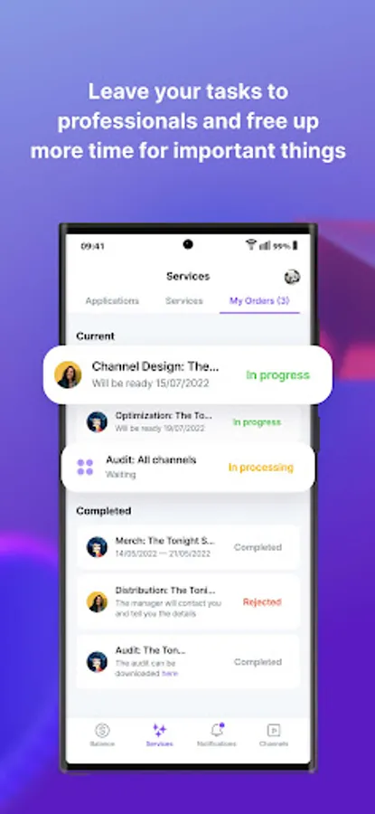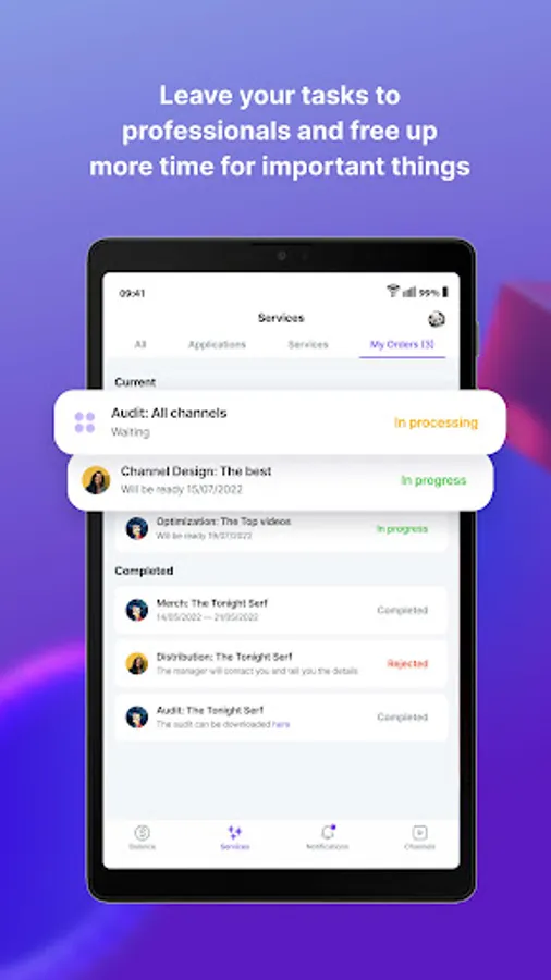 Trust the channel service to professionals. Order design, distribution, audit, or optimization, and free up more time for creativity.