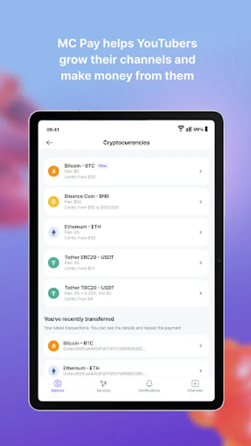 Withdraw income from YouTube right to your crypto wallets. Safe and only at the latest rate.