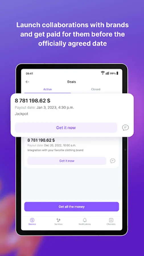 Collect all advertising integrations in one app. We will pay for them before the official payout date.