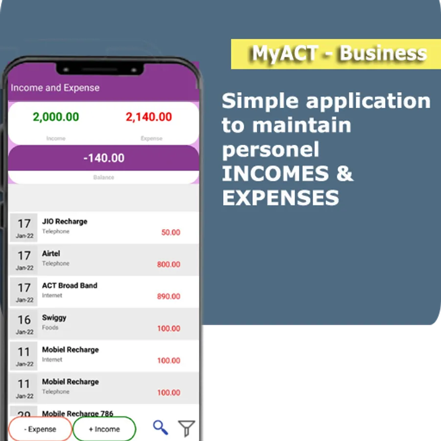 MyACT Book - The Simple Account Book App keep track of you daily simple incomes and expenses in family, note to record your daily incomes and expenses. Digital traditional khata and day-book for your business and personal accounting. Its makes your incomes and expenses in a simple way with user friendly.
