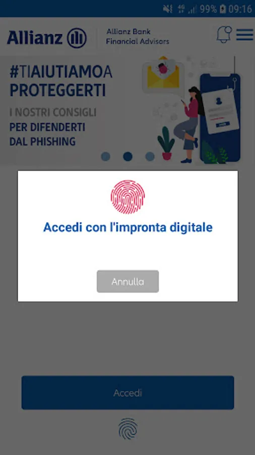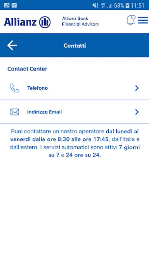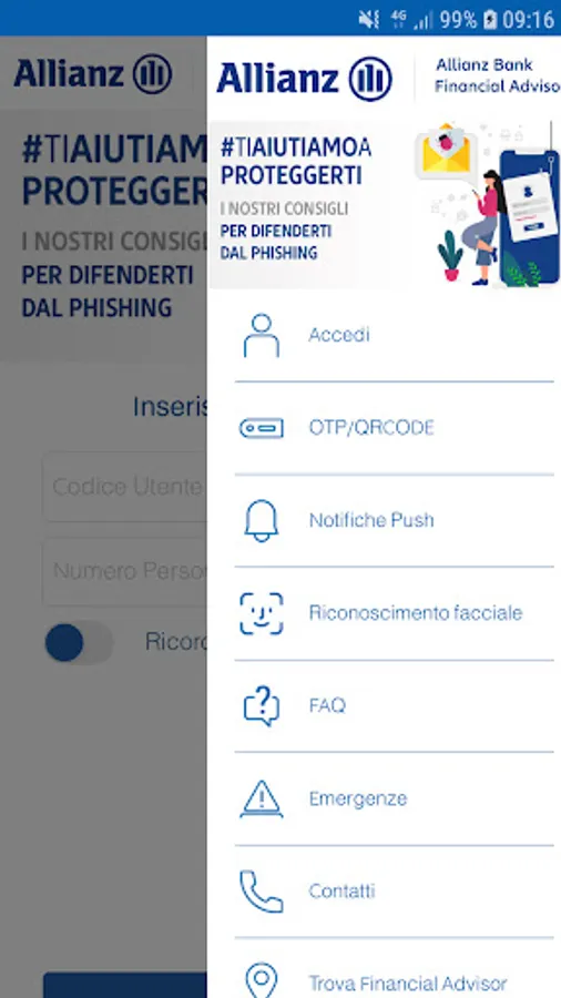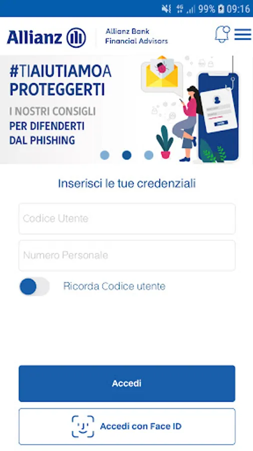 At Allianz Bank Financial Advisors, we care a lot about your security. For example, you immediately have at your disposal the most useful information within the FAQ and the contact center data at your fingertips, without the need to authenticate.