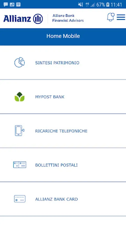 - Management of the Allianz Bank Card, such as customizing the ceilings and enabling use abroad