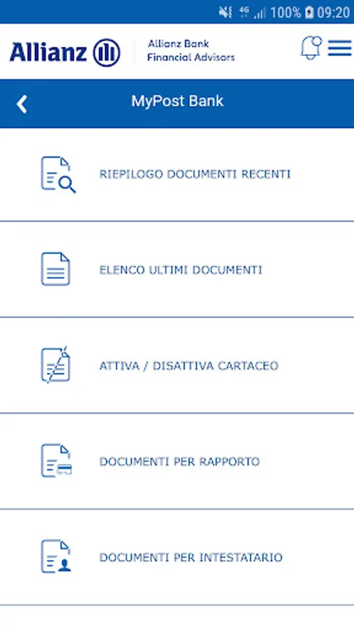 - Consultation of your periodic documentation in digital format with MyPost Bank