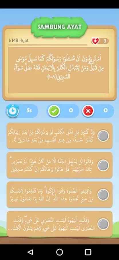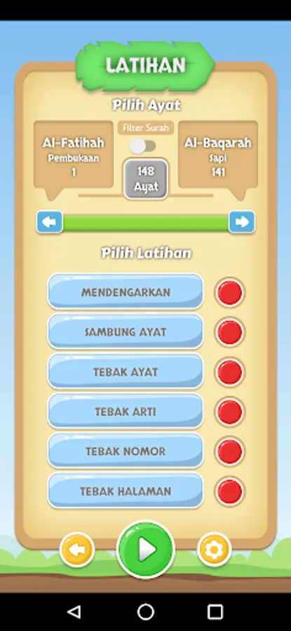 There are 5 exercises to measure how far the level of memorizing Juz 1 is with our settings
