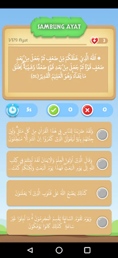 There are 5 exercises to measure how far the level of memorization of Juz 21 is with our settings