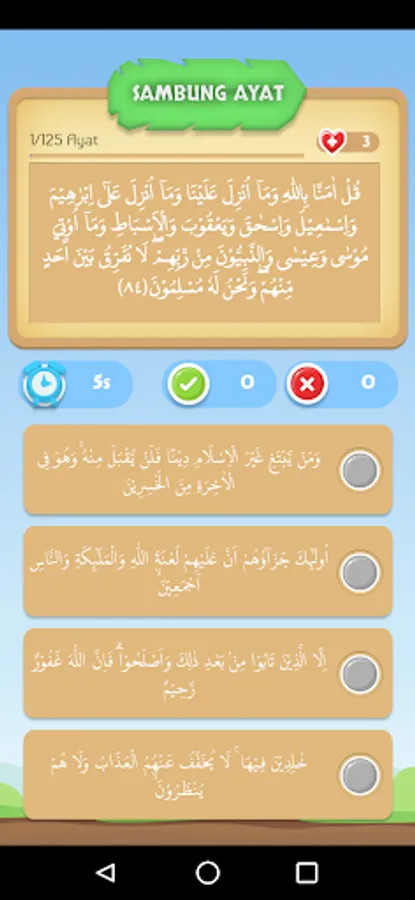 There are 5 exercises to measure how far the level of memorizing Juz 3 is with our settings