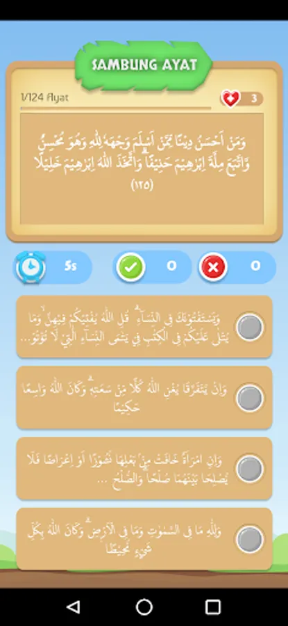 There are 5 exercises to measure how far the level of memorizing Juz 5 is with our settings