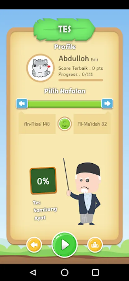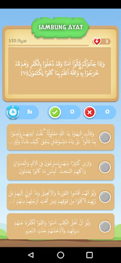There are 5 exercises to measure how far the level of memorizing Juz 6 is with our settings