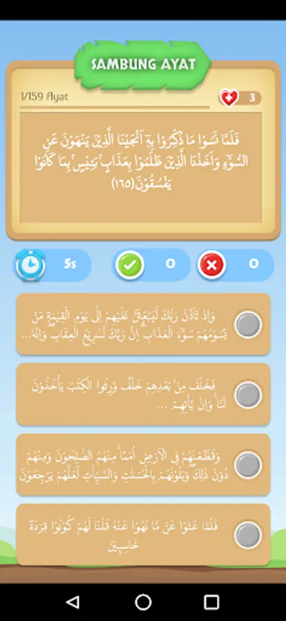 There are 5 exercises to measure how far the level of memorizing Juz 9 is with our settings