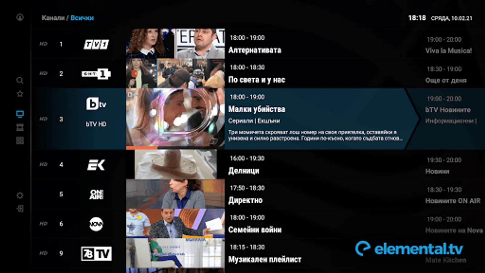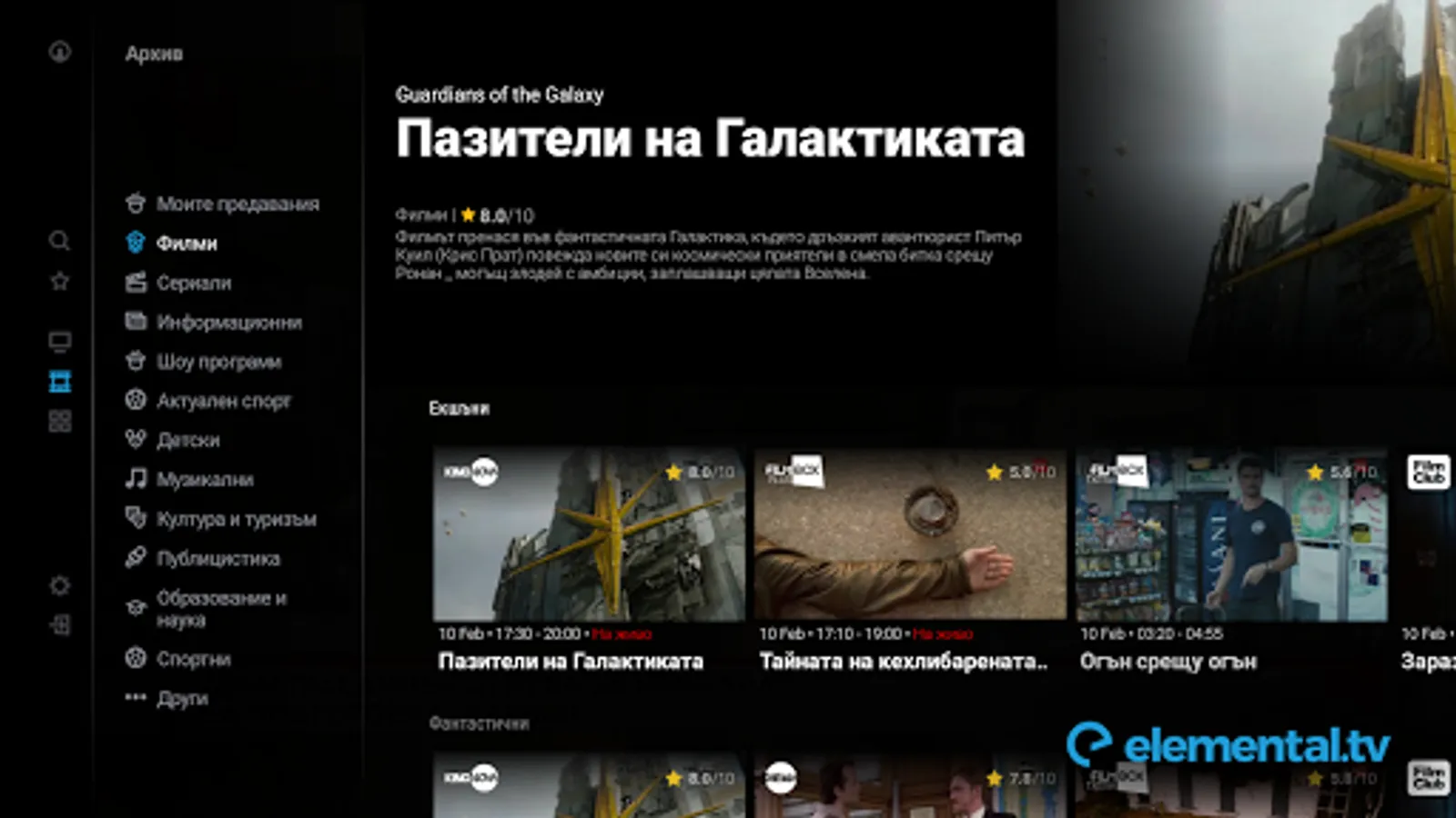 Elemental.TV is the Bulgarian's leading subscription service for watching TV episodes, movies, news and sport on your favorite device.