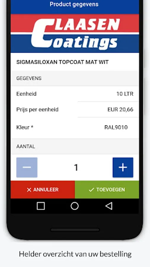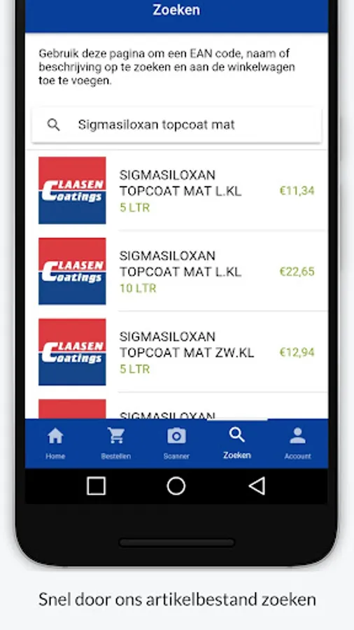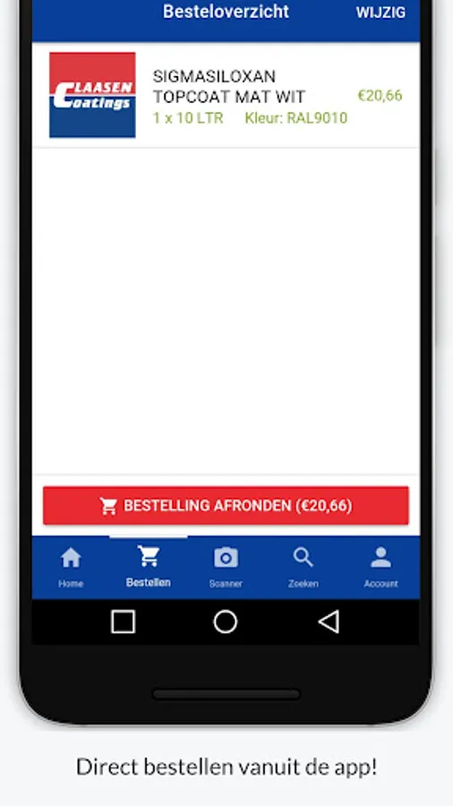 The Claasen and Scan! App allows you to place your smartphone or tablet orders. Using the camera on your smartphone or tablet, you simply scan the EAN - code (bar code) of the desired product. After entering the number, you can add the product to your shopping cart. Using the search function of the app is also possible to manually browse through the selection and ordering. Personalize your order with your own comments before sending it. In the 'Home' screen you also will find the current promotions, so you always are aware of the latest news.