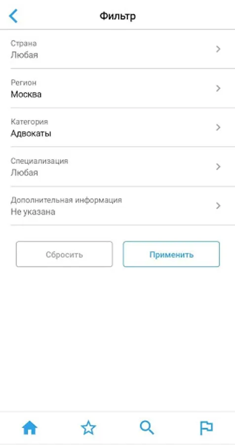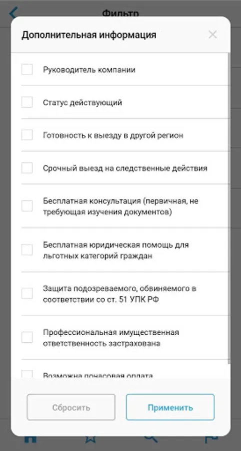 The search is possible taking into account specialization, geolocation and additional clarifying information.
