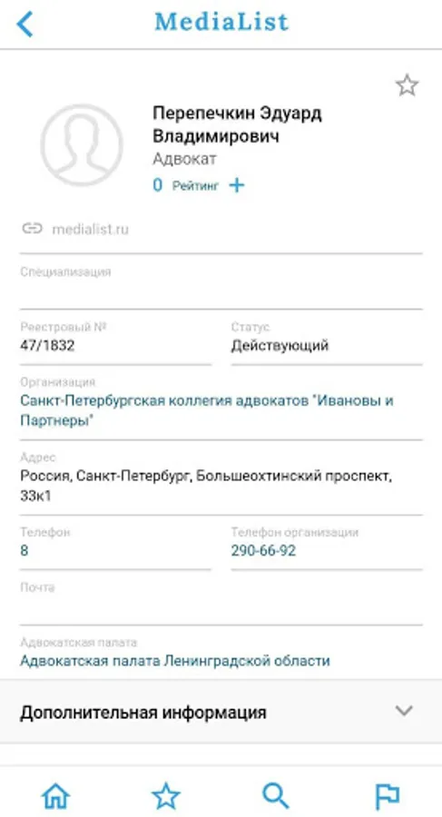 The "MediaList" project is a legal Internet resource containing information about lawyers, auditors, patent attorneys, arbitration managers and organizations in which specialists in these categories are members.