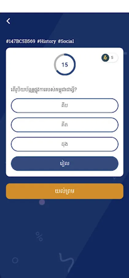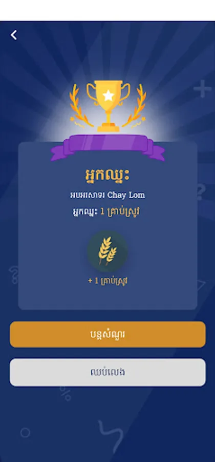 Trivial app for donating rice to Cambodians. This app is for Cambodians to improve their knowledge by answering the question. For each question they answer correctly they will earn points that will convert to rice.