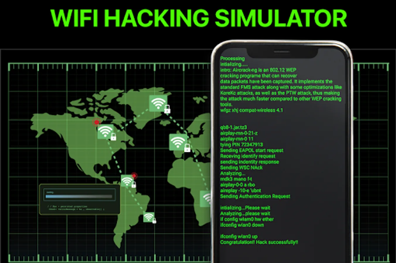 A hacker app, generates a password for your selected WiFi network, show it to friends, and makes them fool, This is basically a prank app that makes a fake hacking process to make fun with friends and prank them. You can impress your friend by using WiFi Password Hacker and can show off that you know hacking.