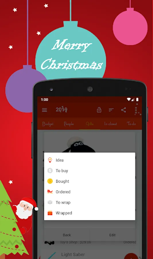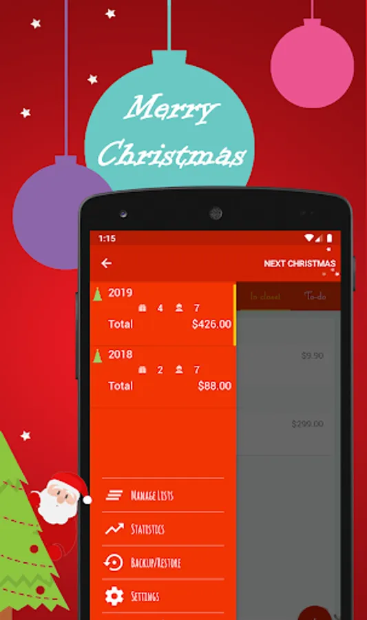 Christmas Gift List is an easy-to-use app to help you organize your Christmas lists and budget so you can spend less time buying presents for the ones you love and more time being present with the ones you love!