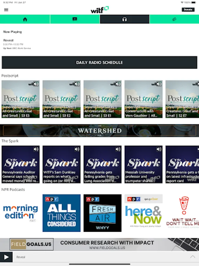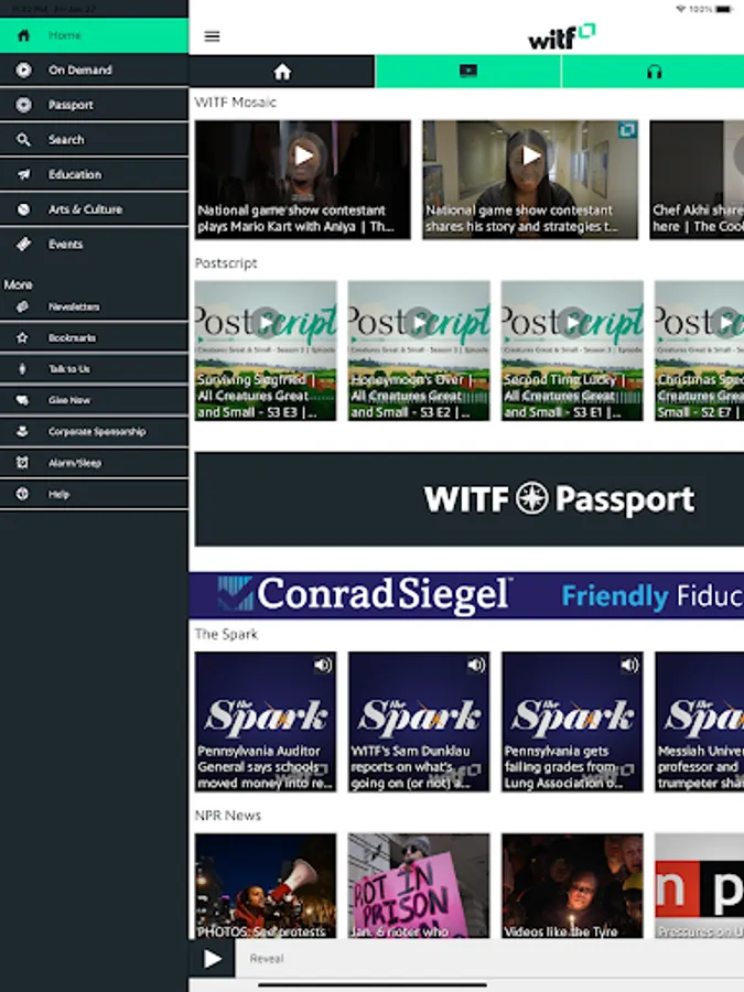 The app provides On-Demand content of all your favorite TV and radio shows, live streaming WITF radio and WITF PBS, and easy access to the live Radio and TV program schedules plus the ability to explore additional content!