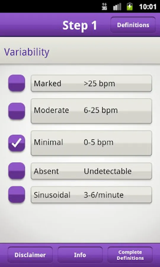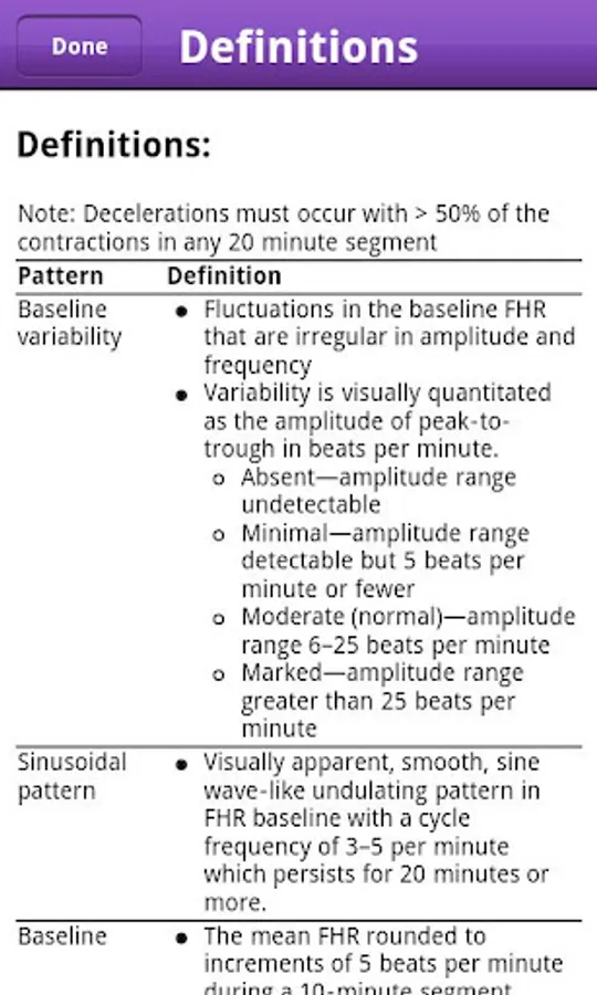 Without the FHR 5-tier app, one must refer to a table with 134 possible combinations of variability, baseline, and decelerations. One must also either memorize or refer to the definitions for mild, moderate and severe decelerations, which are complex and sometimes confusing.