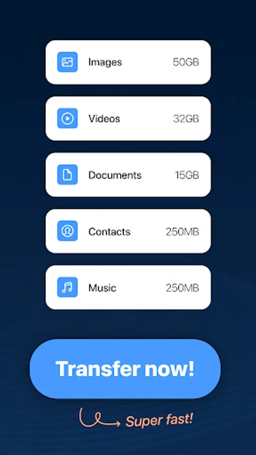 Copy your data from one phone to another over a WiFi network, without the need for a computer.