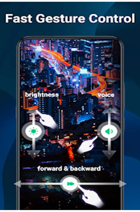 - Easy Gesture Control: Zoom and pan. adjust playback speed, brightness, volume and seeking.