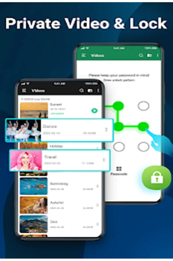 - Private folder: Hide your secret videos to your private folder and protect your privacy