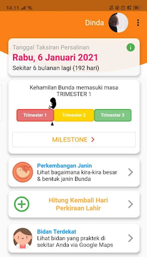 In addition, this online pregnancy calculator application is equipped with a notification feature when the mother enters the next trimester or has entered the due date.