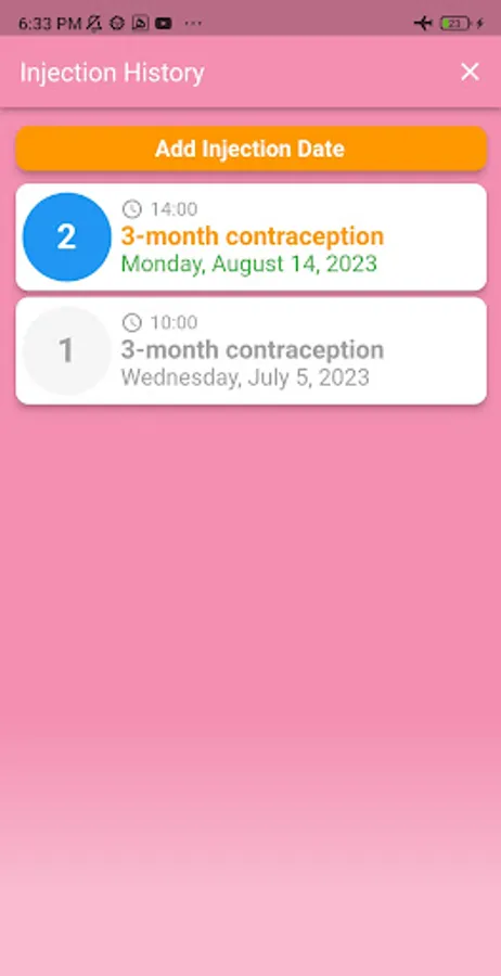 The Birth Control Shot Reminder application is designed to replace manual calendars for tracking upcoming birth control shot schedules. This application is not only for 3-month birth control shots but also for 1-month birth control shots.