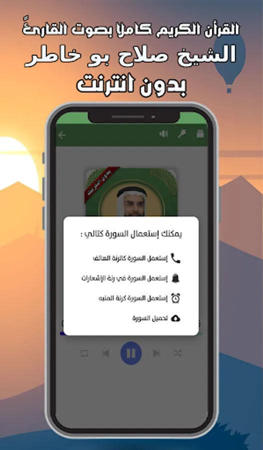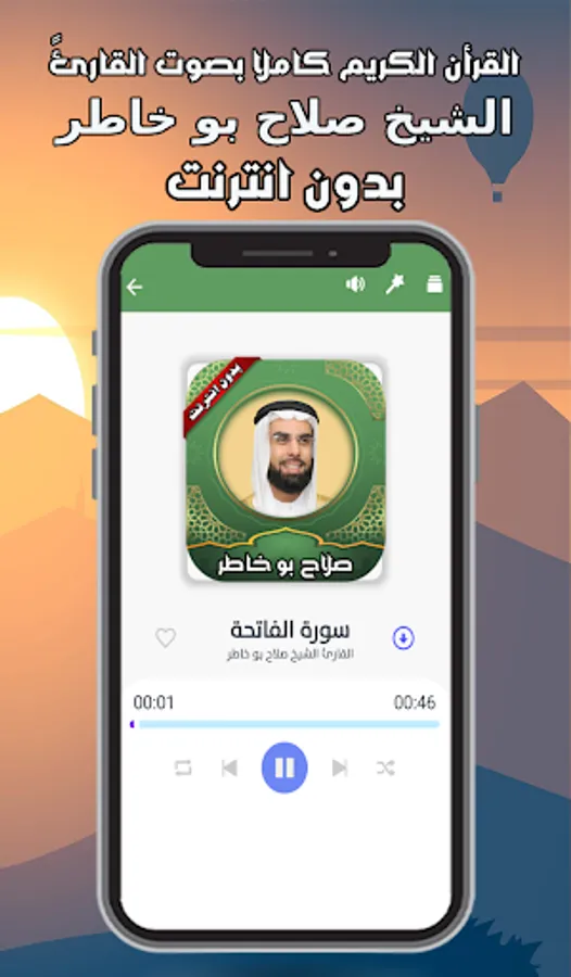 The application of the entire Qur’an Salah Bu Khater without the net enables you to listen to all the surahs of the Noble Qur’an after specifying the name of the surah that you want to listen to, with a fragrant recitation of Sheikh Salah Bu Khater.