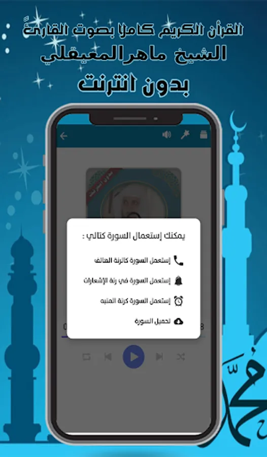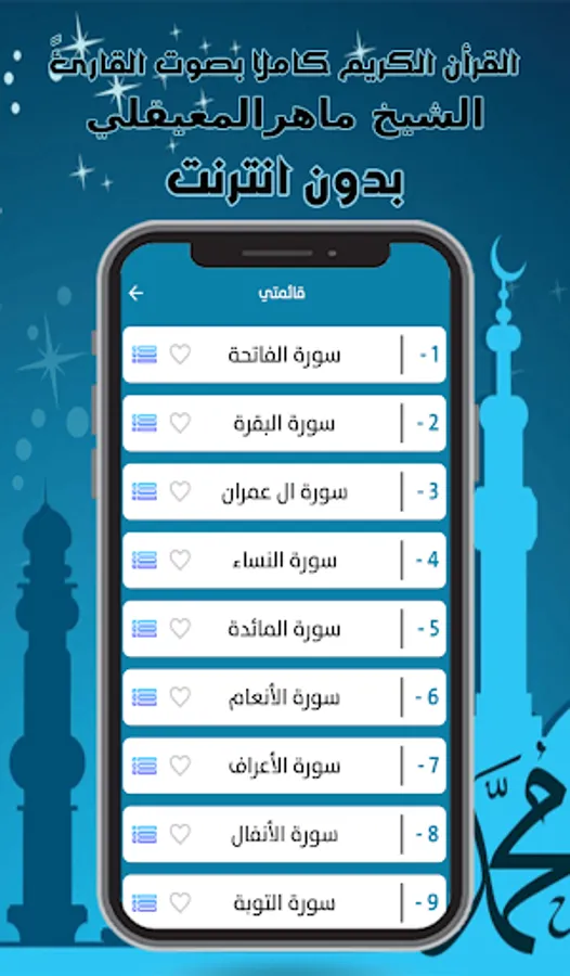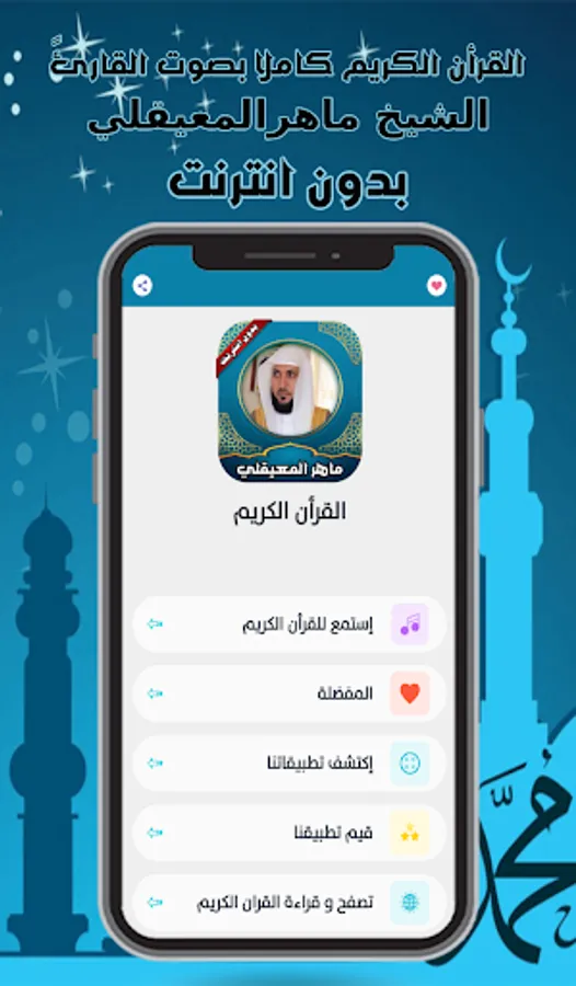 After downloading the application, the entire Qur’an of Maher Al-Muaqili without the Net, you can listen to the surahs of the Noble Qur’an with the voice of Sheikh Maher Al-Muaqili for free, anytime, anywhere, with ease.