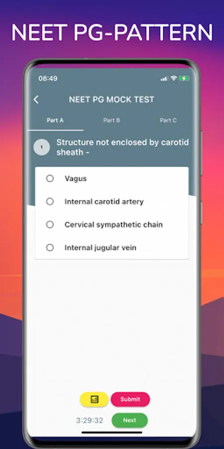 The NEET PG Mock test Series by MediApps World, that are brought to you are designed with utmost skill and have been designed to ensure that you are ready for NEET PG. When you subscribe with our NEET PG Mock test series you can avail the feature of practicing our NEET PG practice tests again and again. In this way, you can be assured of clearing NEET PG in one go. The questions that are posed to you by our NEET PG practice tests will help you analyse your exam preparation as well. The NEET PG Mock test series have been designed for students who wish to learn from their mistakes. These NEET PG preparation tests have been made in strict accordance with the syllabus and exam pattern of NEET PG.