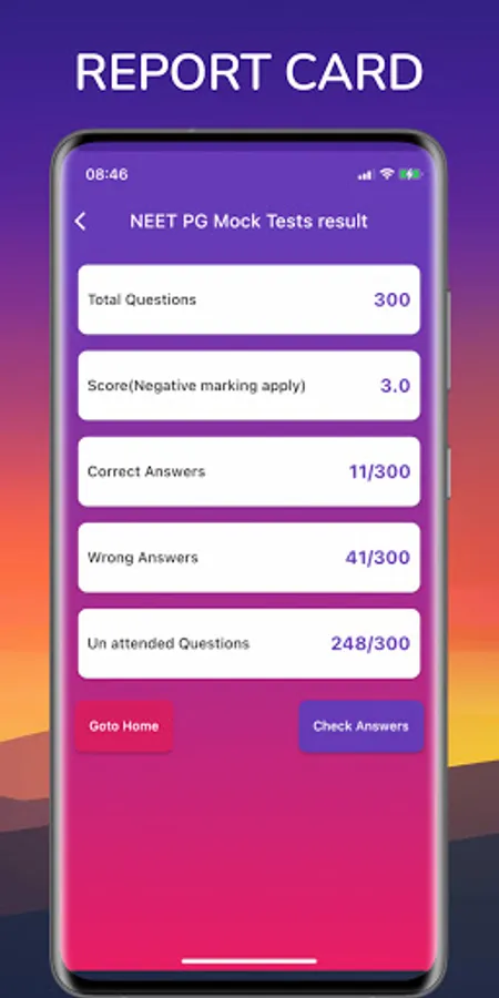 The NEET PG preparation tests and NEET PG Mock Test Series have been molded for you by a highly-experienced team. Our NEET PG Mock Test Series also provides you with a report card which consists of all your right and wrong answers. This report card appears after every NEET PG practice test that you attempt. The candidates aiming for NEET PG have been able to crack the exam in one go. Come subscribe our Application and experience what you have been missing out on!