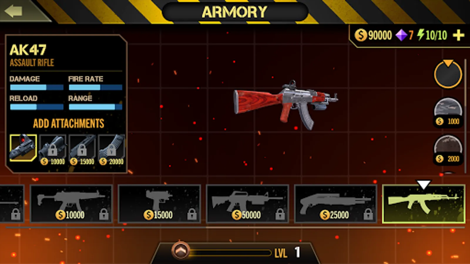 -Earn in-game cash to upgrade weapons and accessories.